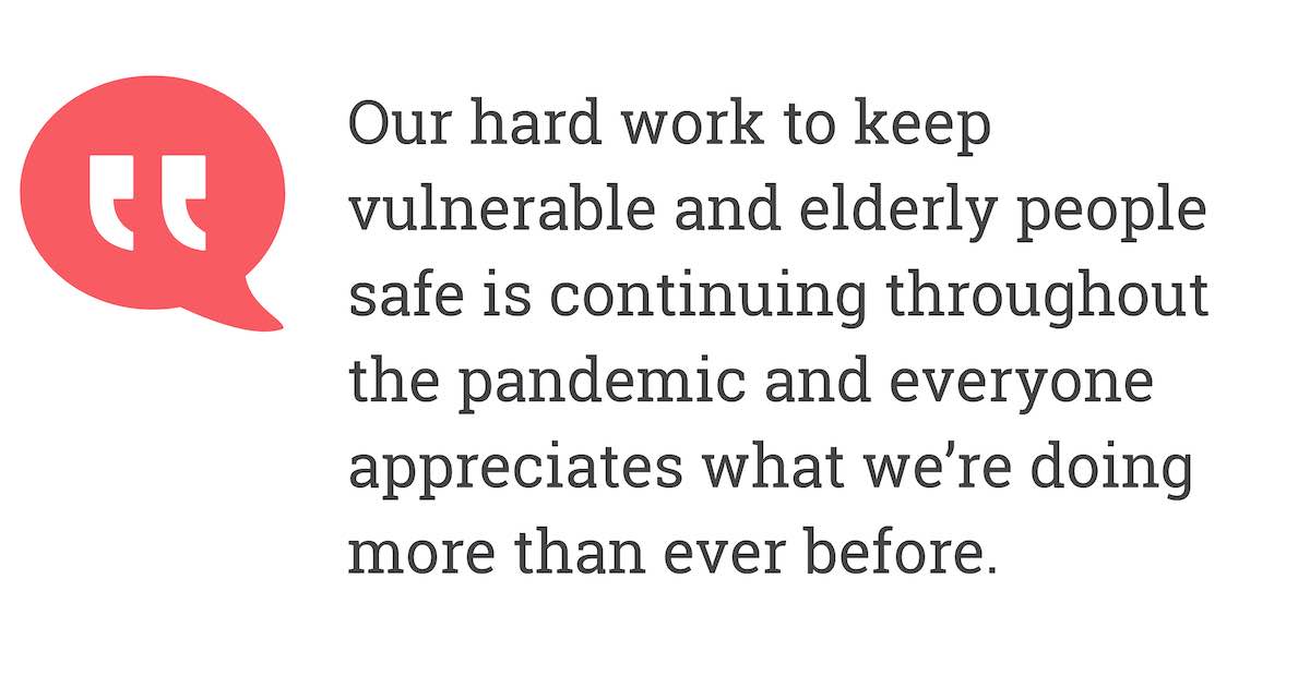 Our hard work to keep vulnerable and elderly people safe is continuing throughout the pandemic and everyone appreciates what we’re doing more than ever before.