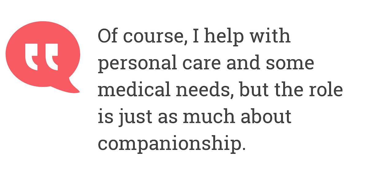 Of course, I help with personal care and some medical needs, but the role is just as much about companionship.
