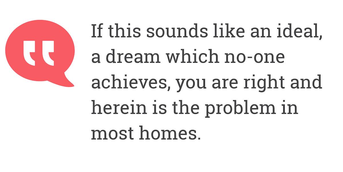 If this sounds like an ideal, a dream which no-one achieves, you are right and herein is the problem in most homes.