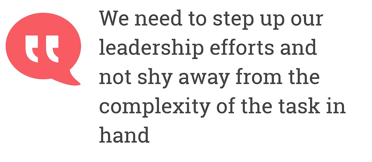 We need to step up our leadership efforts and not shy away from the complexity of the task in hand.