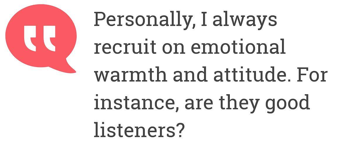 Personally, I always recruit on emotional warmth (ask yourself 'do they have any?').