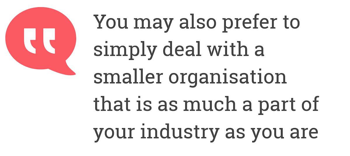 You may also prefer to simply deal with a smaller organisation that is as much a part of your industry as you are.