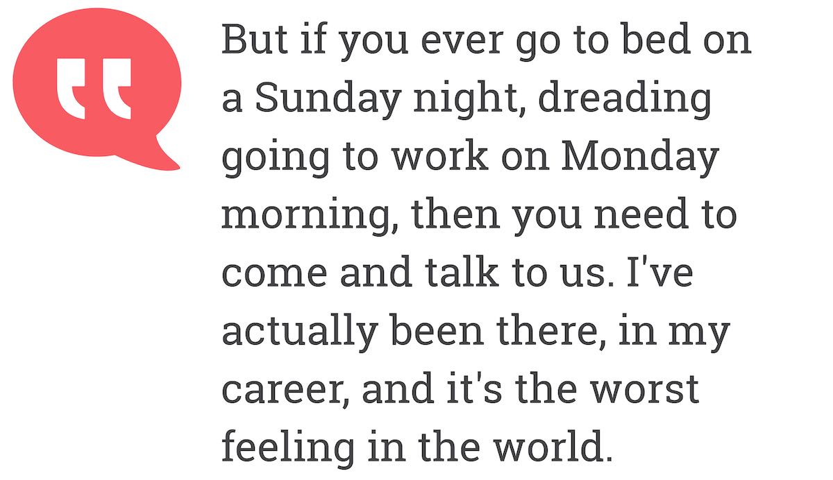 It's the fundamental principle behind running a good business. The one thing, people will hear me say this often when we have a new starter. I always say to people that just started with us, "I hope you enjoy working here, you'll be well supported and well looked after. But if you ever got to bed on a Sunday night, dreading going to work on Monday morning, then you need to come and talk to us. Because I've actually been there, in my career, and it's the worst feeling in the world."