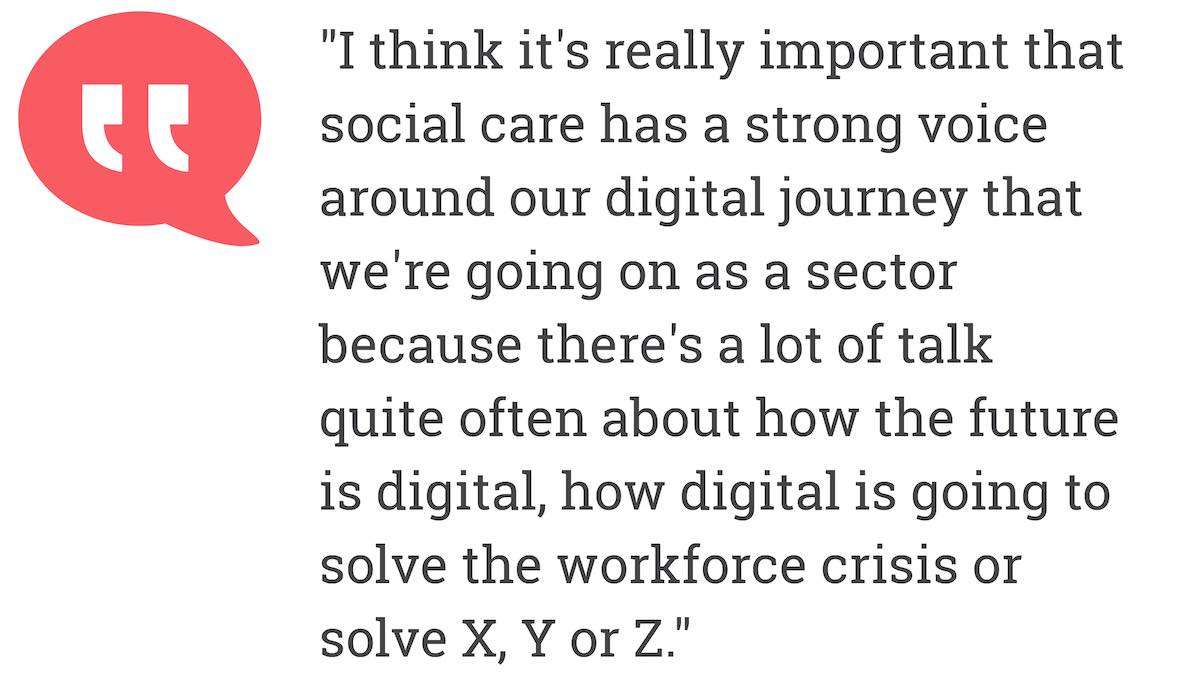 "I think also what was really helpful is actually rather than saying, "Oh, we all have to be the same or being equal," is understanding the different skillsets that everybody in our team brings to the table. Everyone has a background working in social care at various different levels of expertise with technology."
