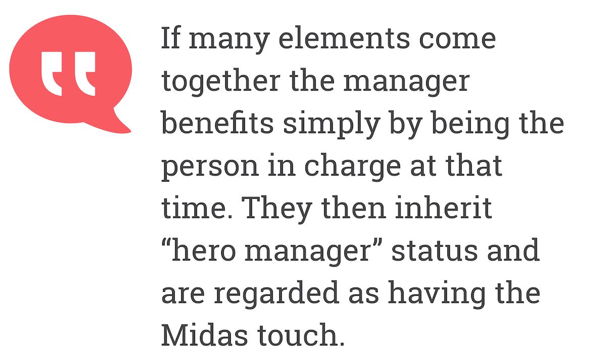 If many elements come together positively and fortuitously, the manager benefits simply by being the person in charge at that time.