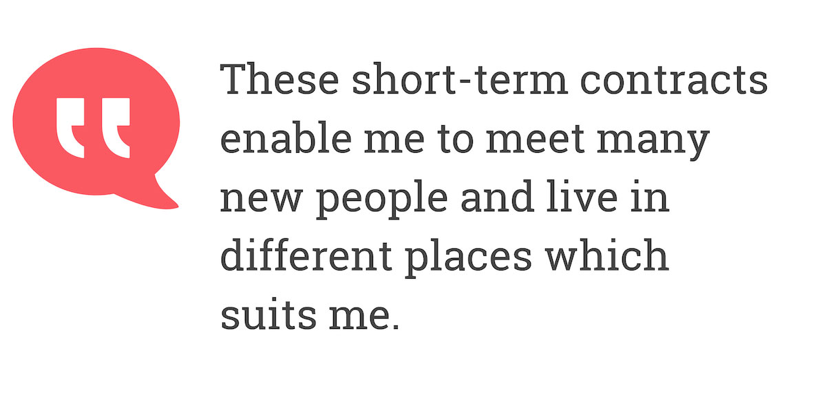 These short-term contracts enable me to meet many new people and live in different places which suits me.