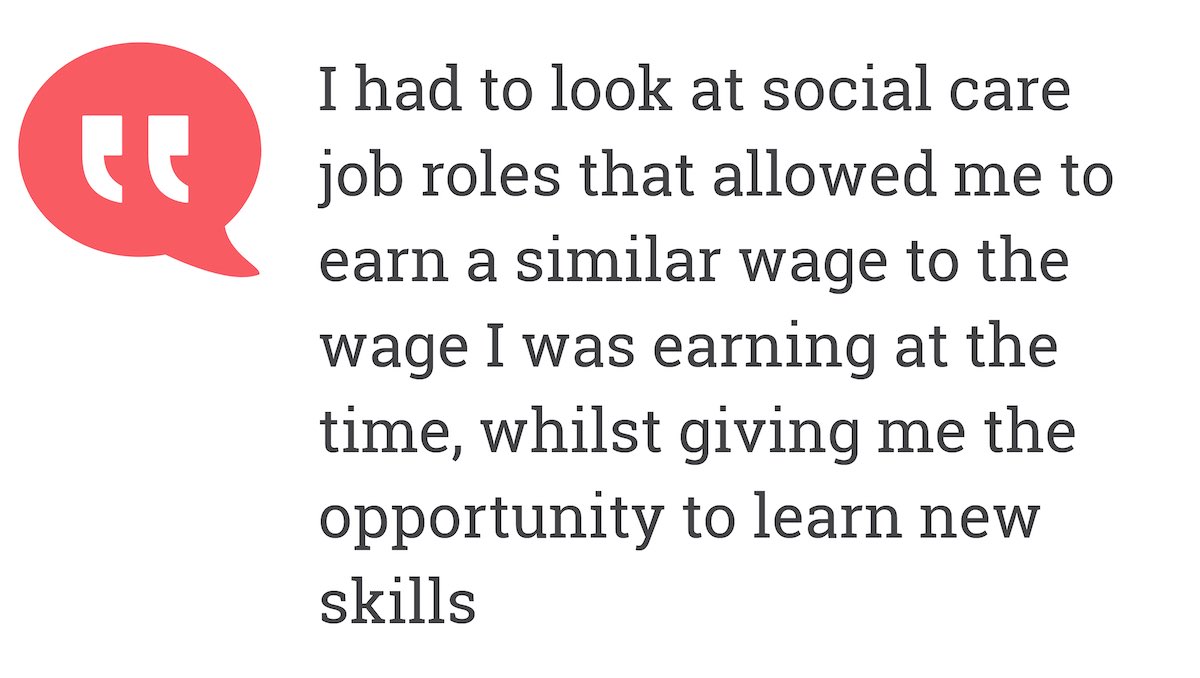 I had to look at job roles that allowed me to earn a similar wage to the wage I was earning at the time, whilst giving me the opportunity to learn new skills.