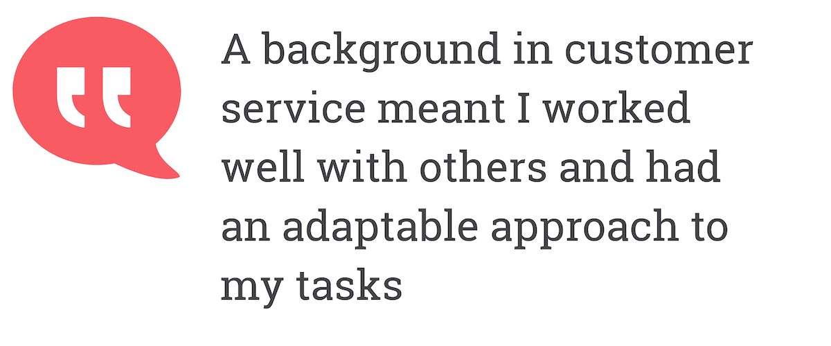 Although there may not be many obvious similarities between banking and care work, I feel a background in customer service meant I worked well with others and had an adaptable approach to my tasks.