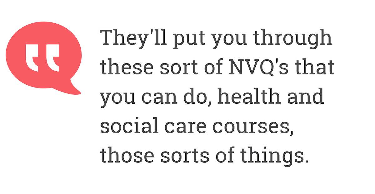 They'll put you through these sort of NVQ's that you can do, health and social care courses, those sorts of things.