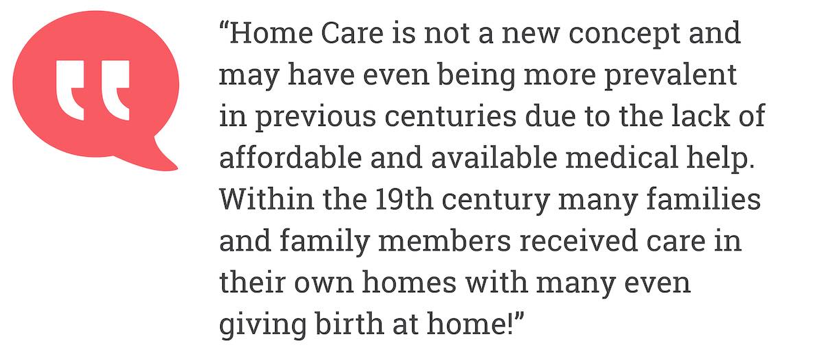 Home Care is not a new concept and may have even being more prevalent in previous centuries due to the lack of affordable and available medical help.
