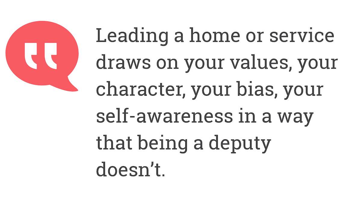 Leading a home or service draws on your values, your character, your bias, your self-awareness in a way that being a deputy doesn’t.