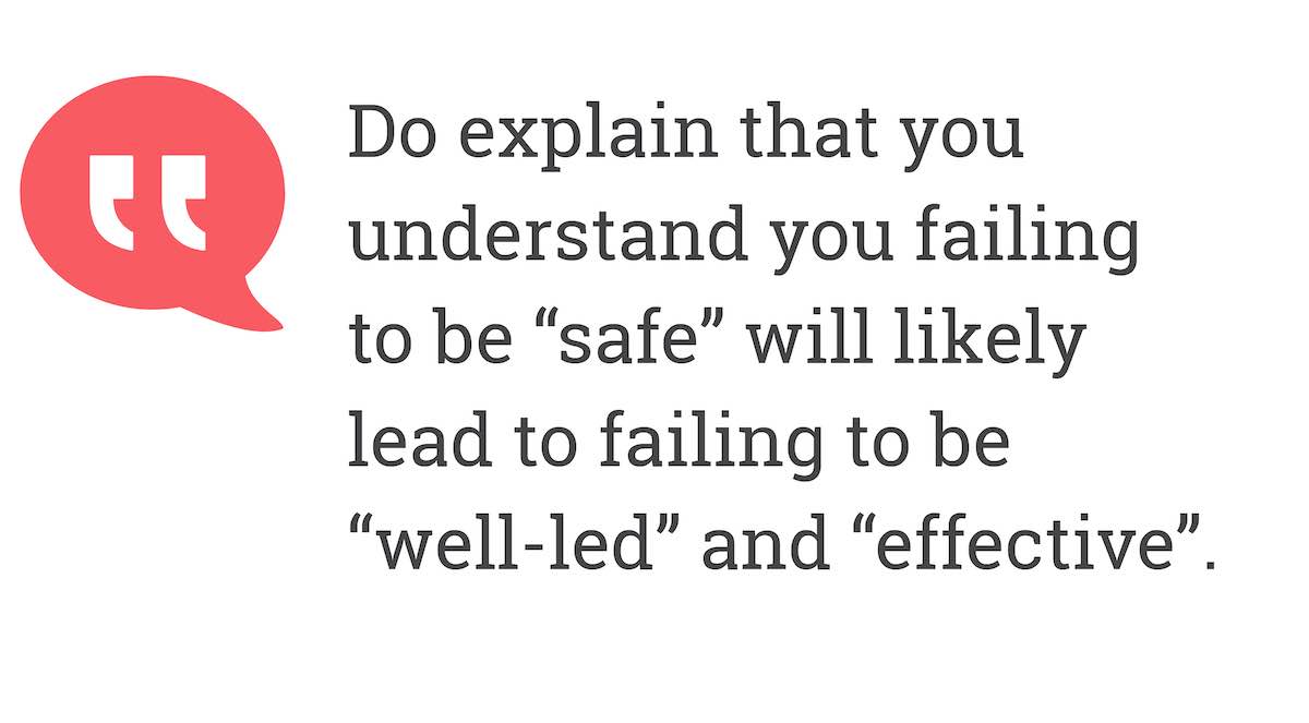 Do explain that you understand you failing to be “safe” will likely lead to failing to be “well-led” and “effective”.