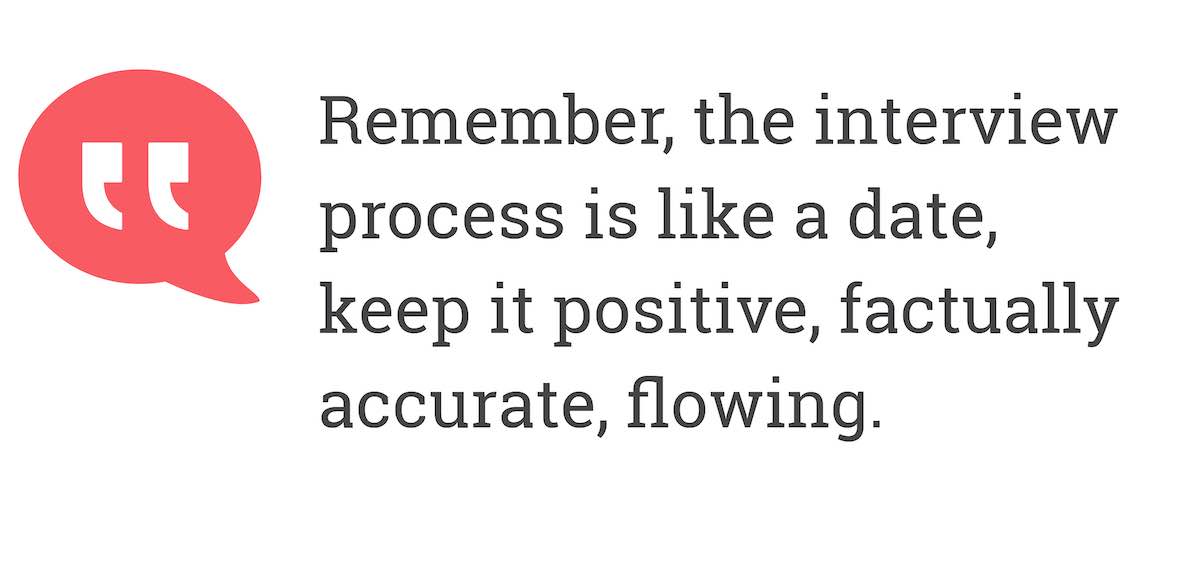 Remember, the interview process is like a date, keep it positive, factually accurate, flowing.