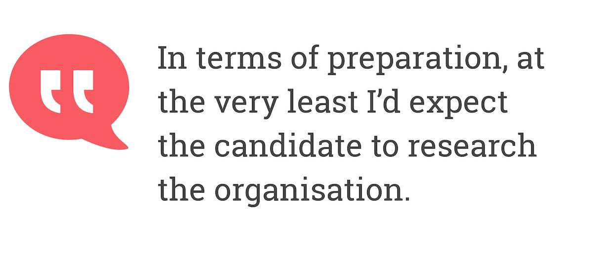 In terms of preparation, at the very least I’d expect the candidate to research the organisation – find out whether it is private or a charity.