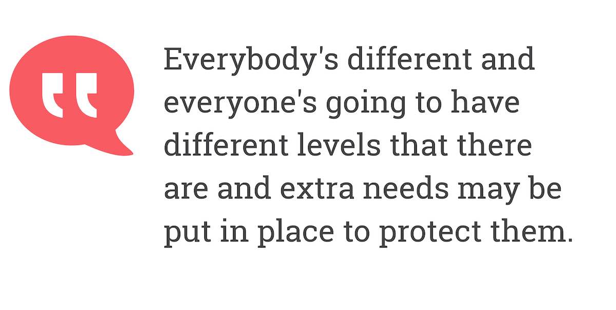 Everybody's different and everyone's going to have different levels that there are and extra needs may be put in place to protect them.