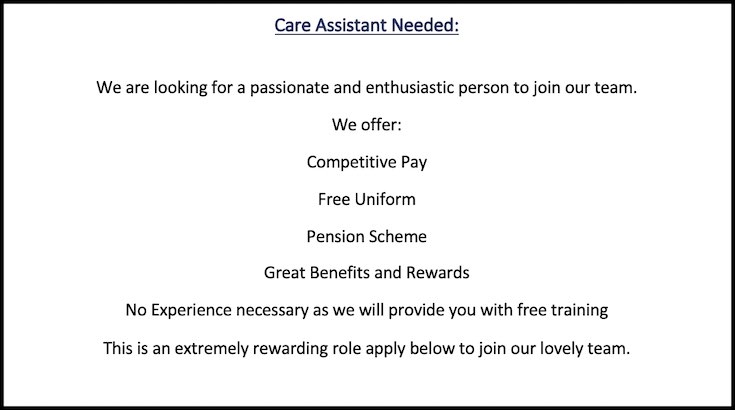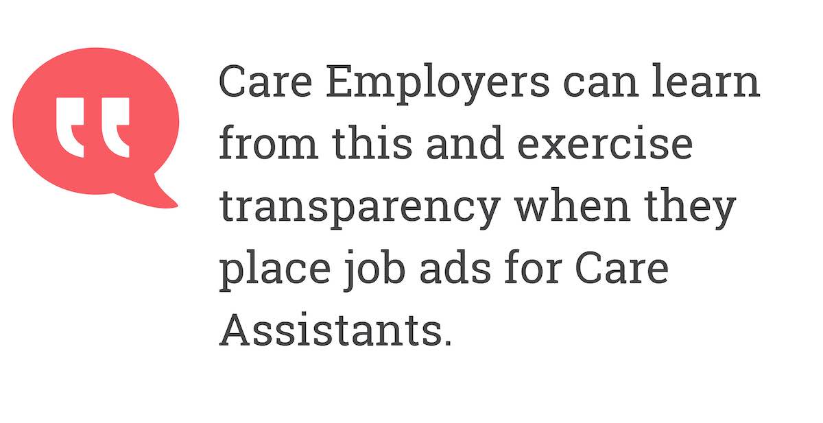 Care Employers can learn from this and exercise transparency when they place job ads for Care Assistants.