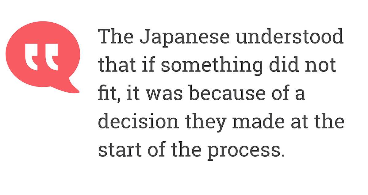 The Japanese understood that if something did not fit, it was because of a decision they made at the start of the process.