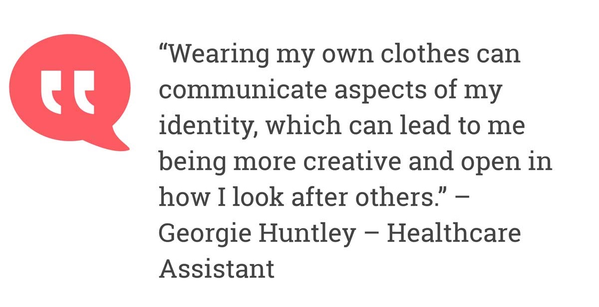 If no formal uniform is provided, is there such a thing as ‘unprofessional’ work attire? Georgie also mentions that another justification for her wearing her own clothes was to make the residents feel more at home and less institutionalised.