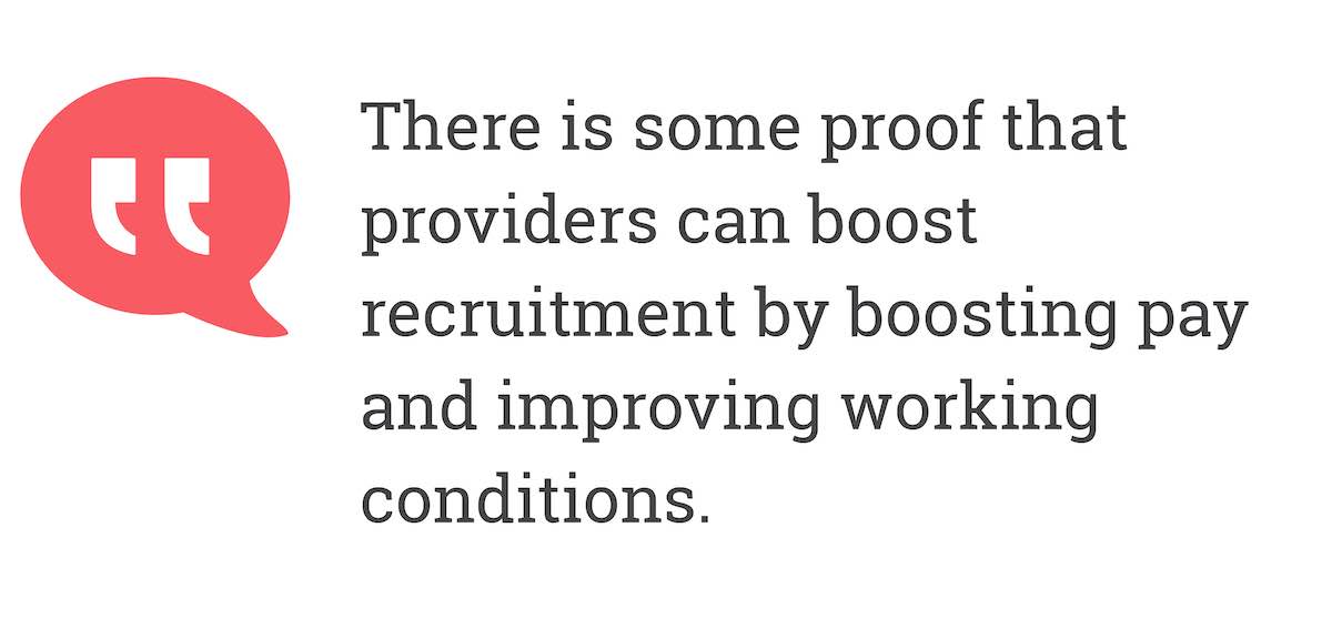 So, there is some proof that providers can boost recruitment by boosting pay and improving working conditions.