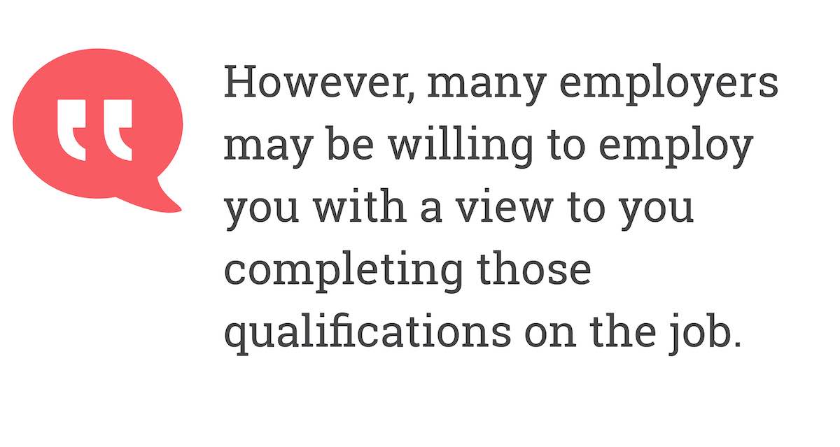 However, many employers may be willing to employ you with a view to you completing those qualifications on the job.